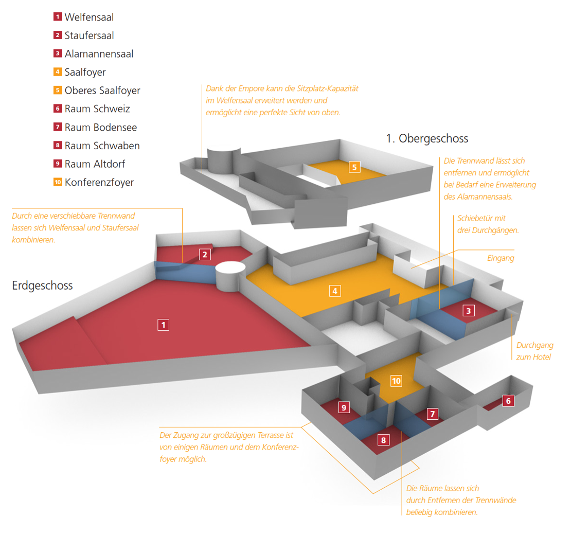 Ob Kongress, Gala, Empfang oder Tagung, Firmenfeier, Modenschau oder Konzert, Familienfeier, Hochzeit oder Abiball – im Kultur-und Kongresszentrum Oberschwaben finden Sie den passenden Raum für Ihre Veranstaltung.