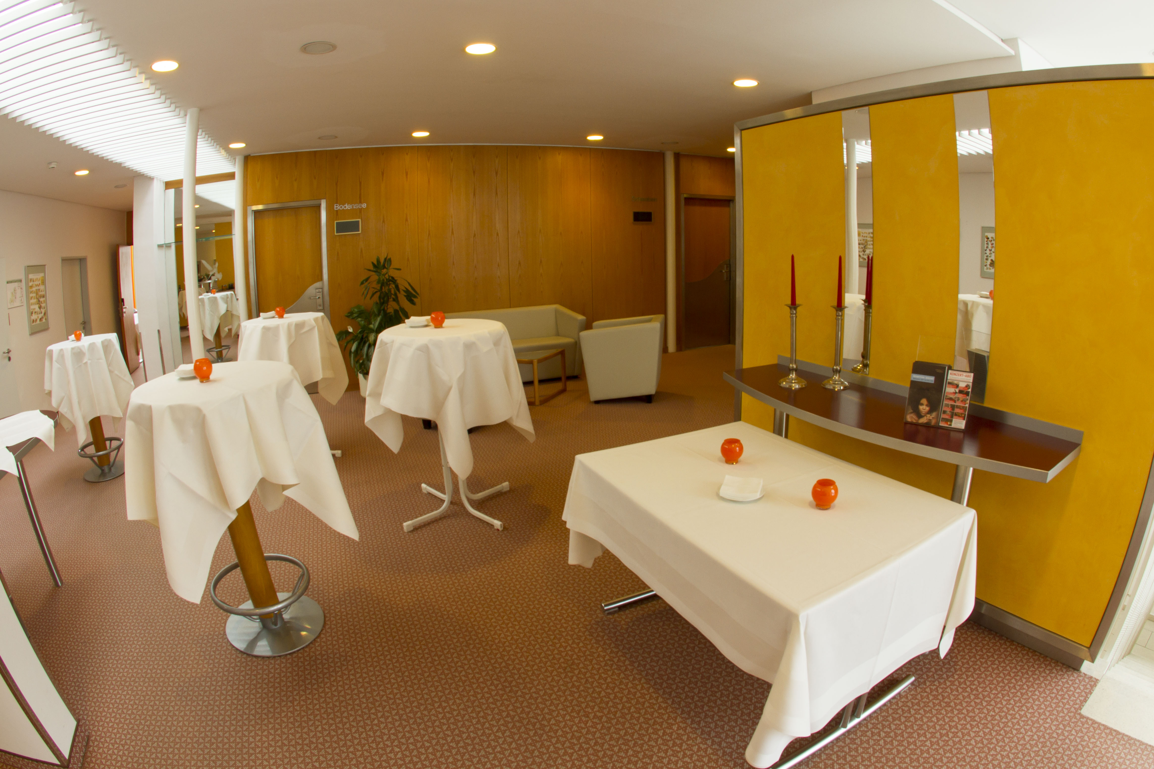 | Bestuhlungsvarianten | U-Form (20 Plätze) Parlament (30 Plätze) Kino (49 Plätze) Bankett (44 Plätze) Runde Tische (32 Plätze) |